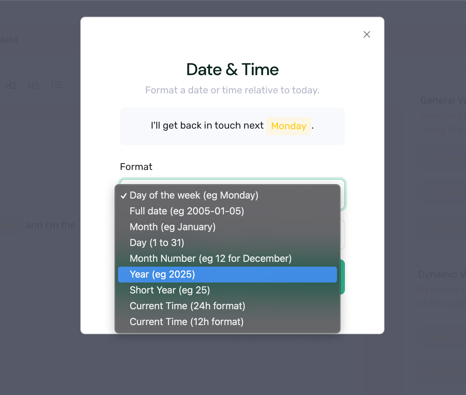 We've added individual date segments (day, month and year) as separate variables so you can completely customize the format of the date (be it 31/01/2021 or 2021-01-31).