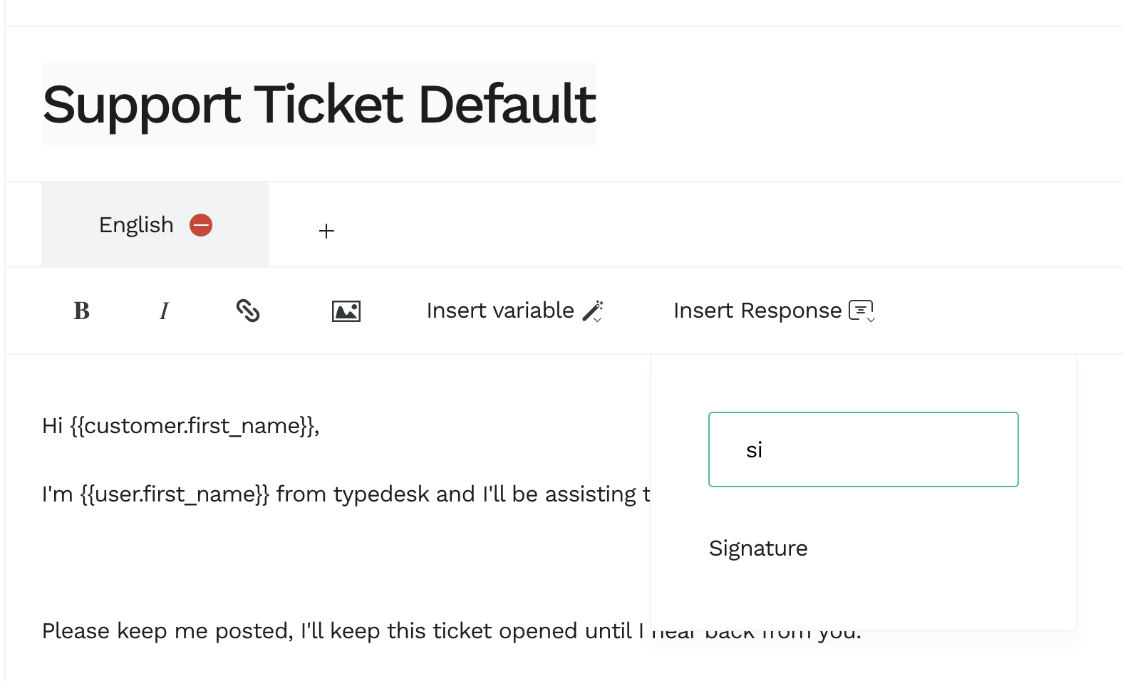 In order to reuse existing blocks in typedesk, simply select Insert response, and select the block you want to insert.
