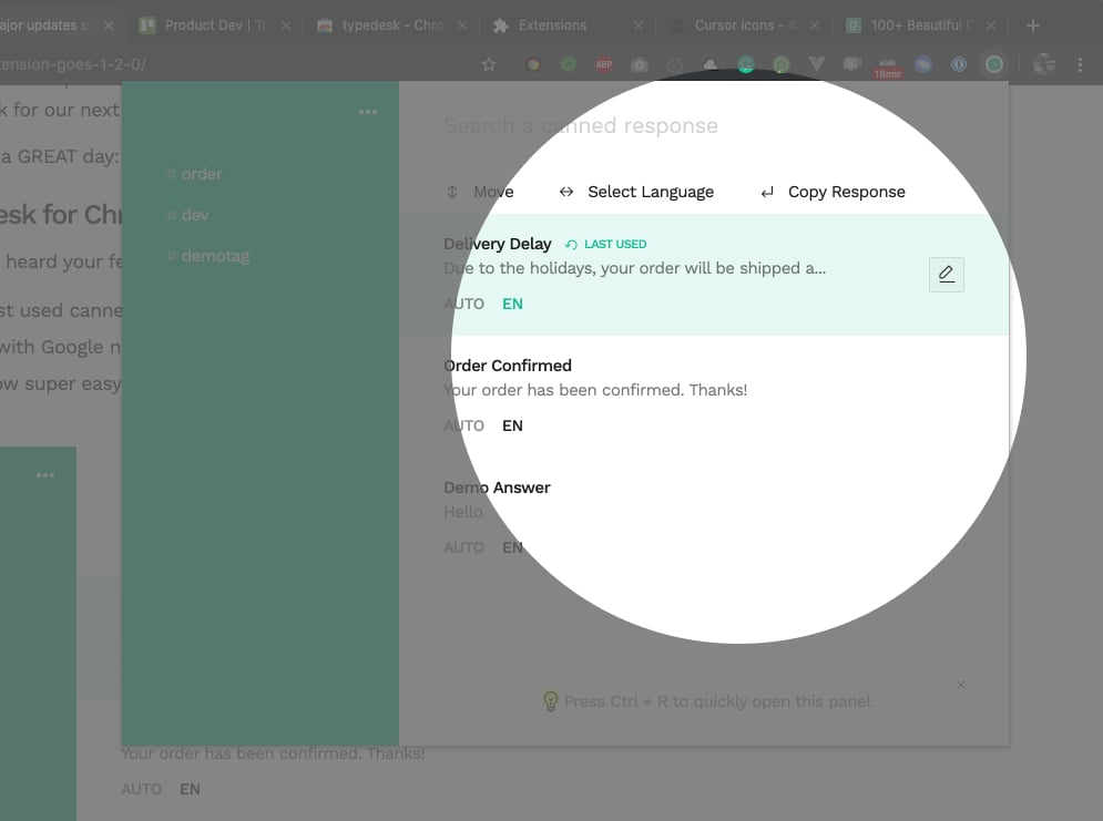 Login on www.typedesk.com/app/ to start using the web app and create your canned responses!