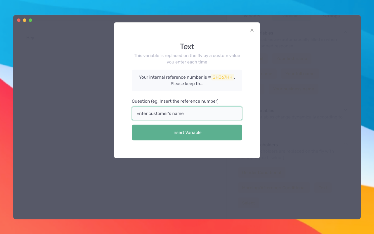 You can insert your customer's information (or any other variable information), by using the text variable.
