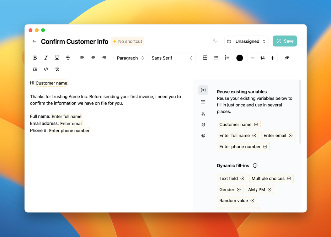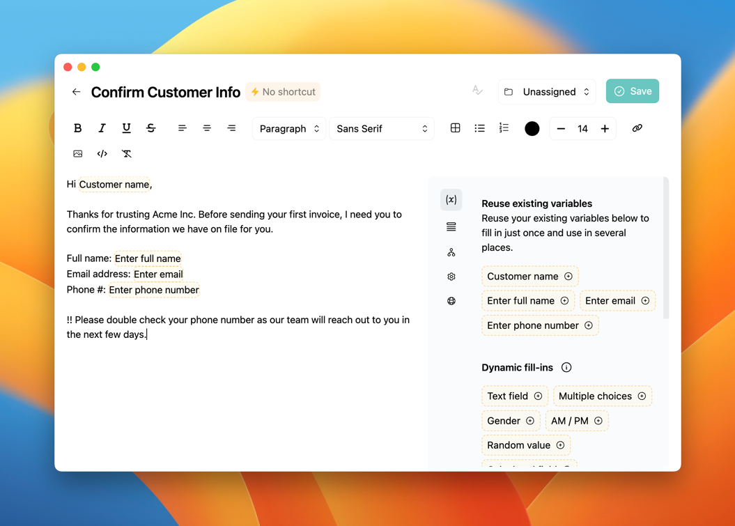 You are working for a Marketing Agency, and you are sending an email to confirm customer information before proceeding to the invoice. You want to outline the importance of having an updated telephone number, only when a telephone number is provided. Let's do it!
