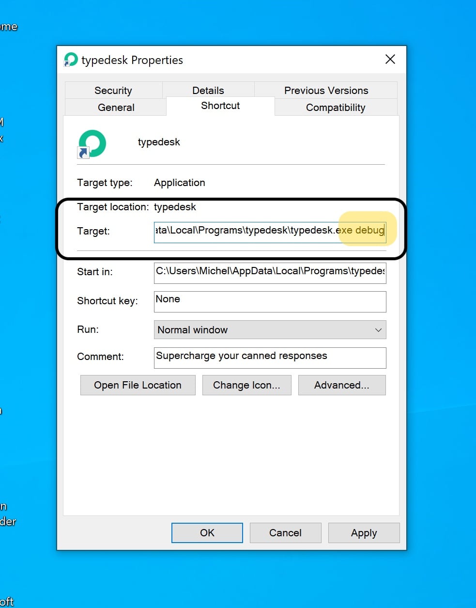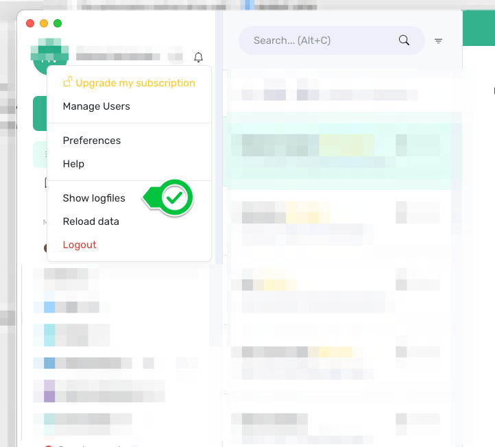 /Applications/typedesk.app/Contents/MacOS/typedesk debugIn order to open Journals, once you have started typedesk in debug mode, open the main menu and select "Show logfiles":