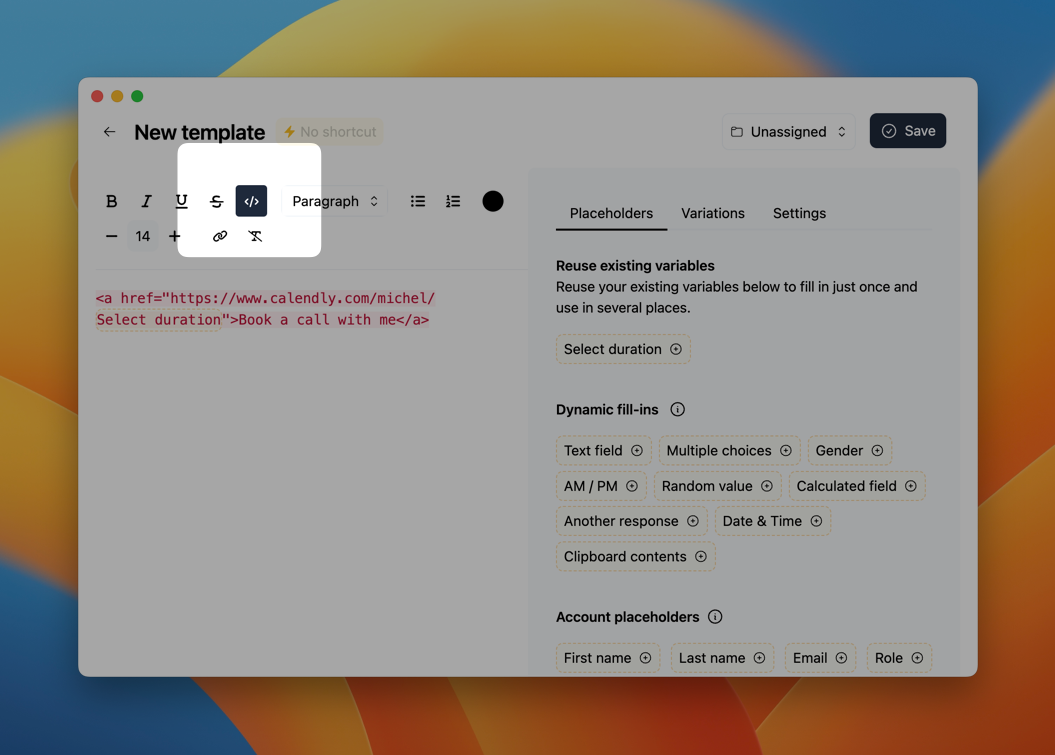 In this tutorial, we'll show you how to use variables to create links dynamically. For example, a link to your several Calendly meetings that say "Click here to book a call with me".