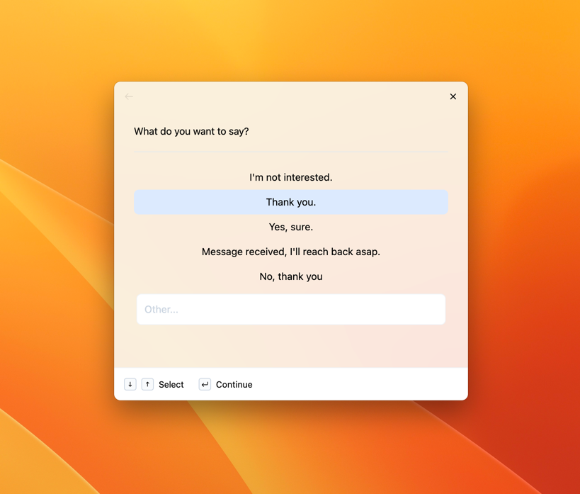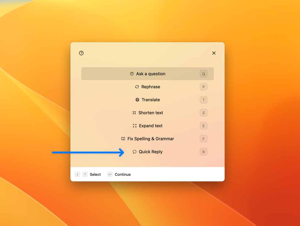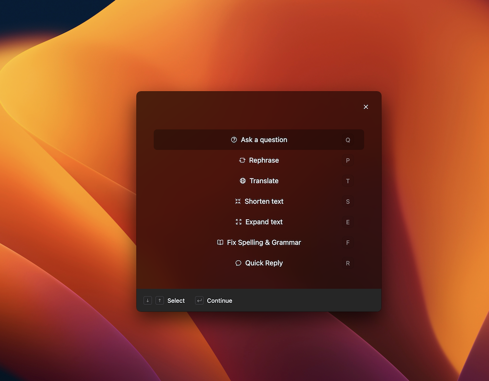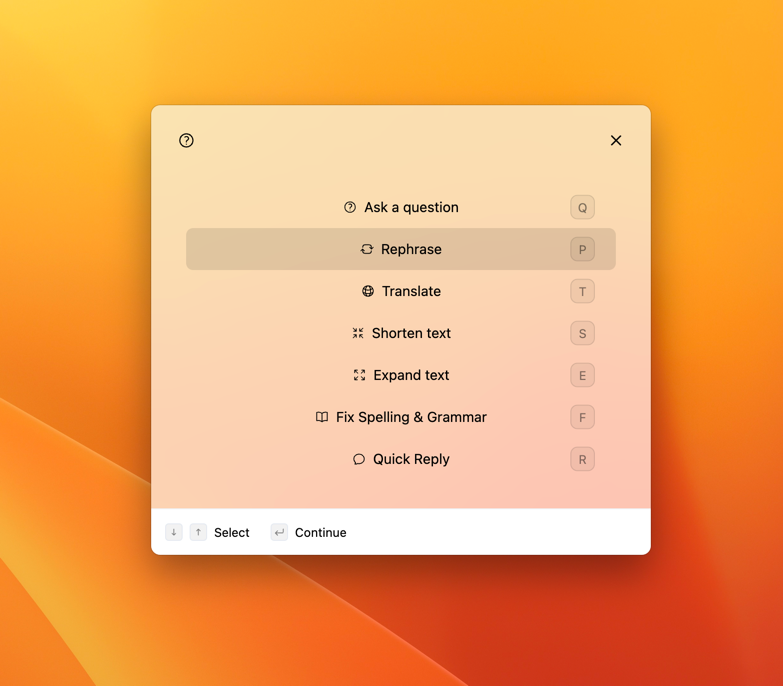 With typedesk, you can avail yourself of built-in shortcuts to employ AI with the text displayed on your screen. This feature enables you to effortlessly restructure content or quickly respond to an email.