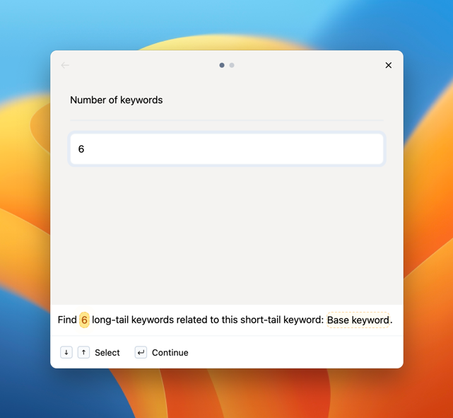 typedesk has a prompt builder that enables you to personalize the number of keywords you require and select the base keyword you prefer to utilize.