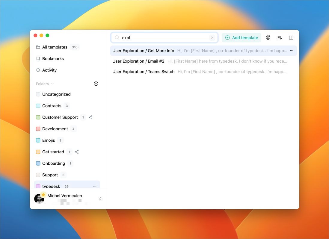 Organization: typedesk allows you to organize your canned responses into folders and subfolders, making it easier to find the right response for any situation.