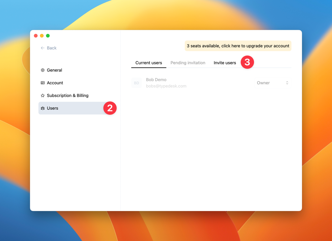 In the User section, select "Invite users".